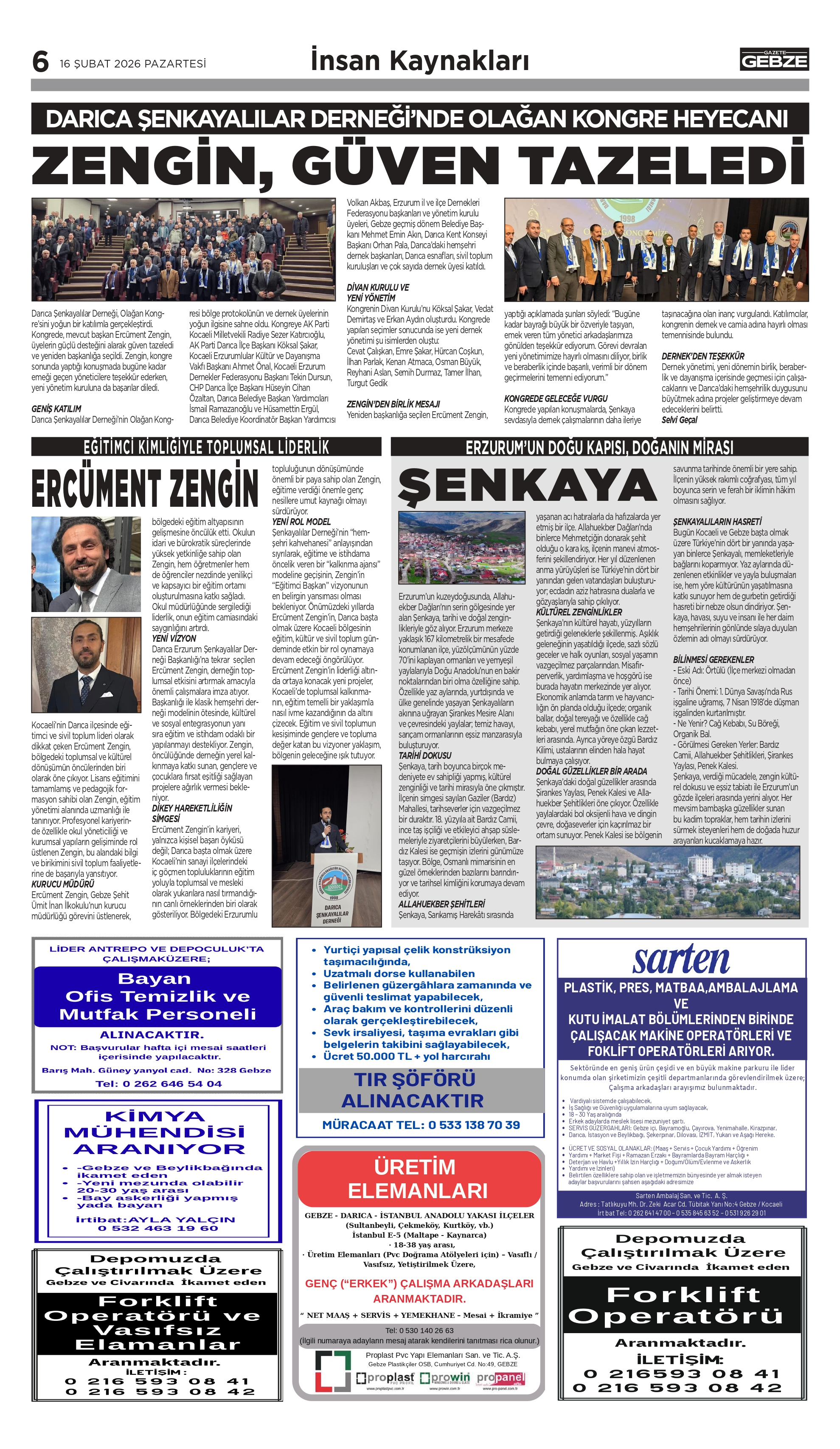 Darıca Şenkayalılar Derneği’nin Olağan Kongresi bölge protokolünün ve dernek üyelerinin yoğun ilgisine sahne oldu. Kongreye AK Parti Kocaeli Milletvekili Radiye Sezer Katırcıoğlu, AK Parti Darıca İlçe Başkanı Köksal Şakar, Kocaeli Erzurumlular Kültür ve Dayanışma Vakfı Başkanı Ahmet Önal, Kocaeli Erzurum Dernekler Federasyonu Başkanı Tekin Dursun, CHP Darıca İlçe Başkanı Hüseyin Cihan Özaltan, Darıca Belediye Başkan Yardımcıları İsmail Ramazanoğlu ve Hüsamettin Ergül, Darıca Belediye Koordinatör Başkan Yardımcısı Volkan Akbaş, Erzurum il ve ilçe Dernekleri Federasyonu başkanları ve yönetim kurulu üyeleri, Gebze geçmiş dönem Belediye Başkanı Mehmet Emin Akın, Darıca Kent Konseyi Başkanı Orhan Pala, Darıca’daki hemşehri dernek başkanları, Darıca esnafları, sivil toplum kuruluşları ve çok sayıda dernek üyesi katıldı.