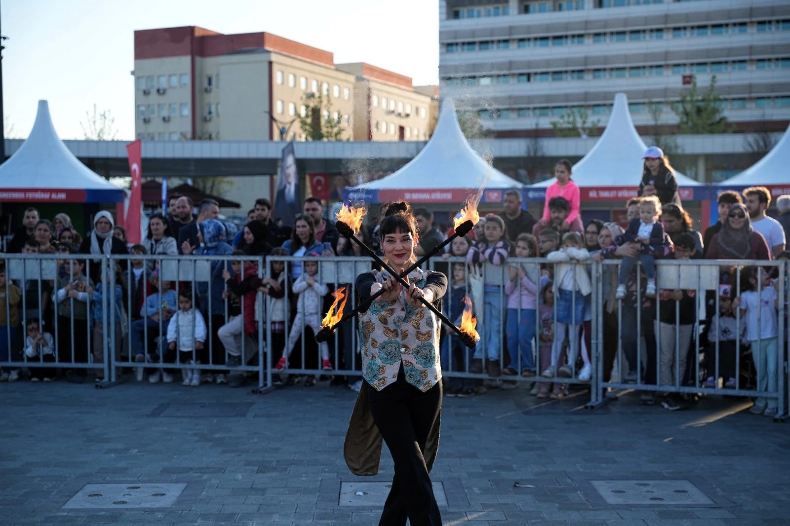 23 Nisan Çocuk Şenliği’nin en çarpıcı anlarından biri olan “Ateş Gösterisi”, çocukların büyük bir hayranlıkla izlediği anlarla akıllarda yer etti. Havada süzülen alevleri takip eden minik gözlerdeki heyecan ve şaşkınlık, fotoğraf karelerine yansıdı. Etkinliğe katılan aileler de çocuklarının gösteriyi büyük bir beğeniyle izlemesini, çektikleri videolarla ölümsüzleştirdi. Kocaeli Büyükşehir Belediyesi’nin düzenlediği bu etkinlik, 23 Nisan coşkusunu zirveye taşıyarak hem çocuklara hem de ailelere unutulmaz bir deneyim yaşattı.