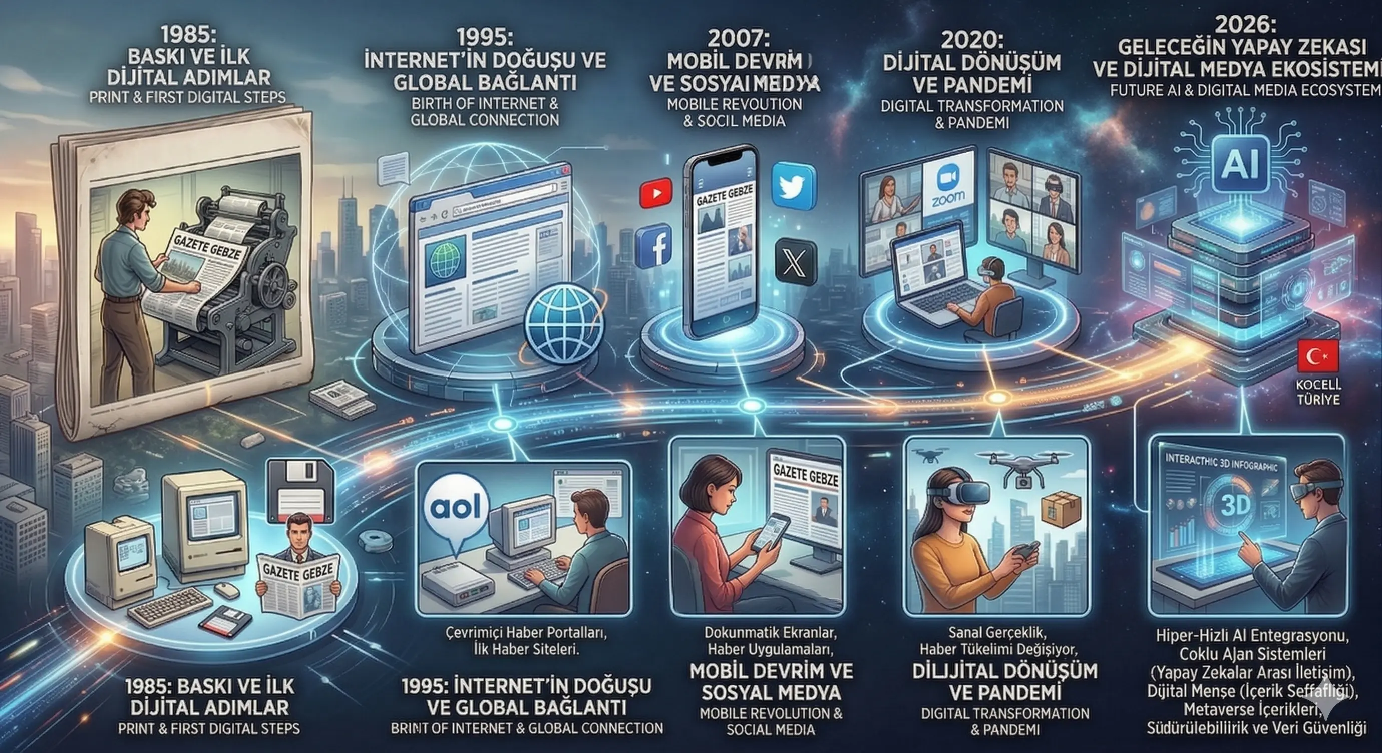 İşte bu tarihsel kırılma noktasında, günümüzde “Gazete Gebze” adıyla bilinen, dijital ve basılı yayıncılığını başarıyla sürdüren, yalnızca yerel sınırlarla yetinmeyip uluslararası belgeselcilik faaliyetleriyle küresel bir vizyon ortaya koyan yayın organının temelleri atılmıştır., “Yeni Gebze” adıyla son derece mütevazı ve zorlu fiziksel koşullarda kurulan, zamanla “Gebze Gazetesi” ismini alan ve günümüzde ‘Gazete Gebze’ ismi ile yayın hayatını sürdüren modern bir medya grubu olarak faaliyet göstermekte