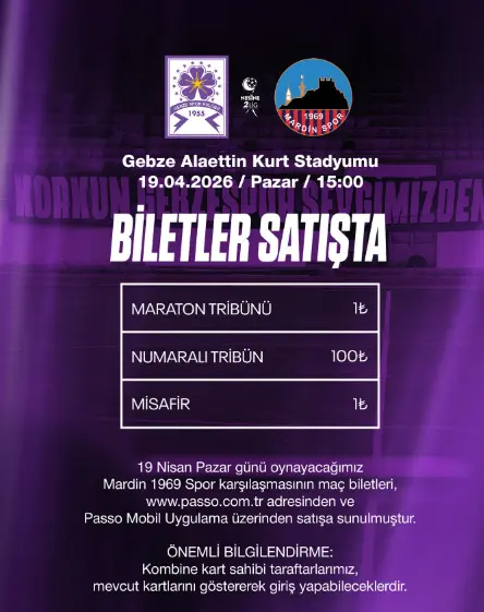 Bu uygulama ile birlikte Gebze Alaettin Kurt Stadı’nın hınca hınç dolması ve “12. adamın” maçın başından sonuna kadar takıma itici güç olması bekleniyor.